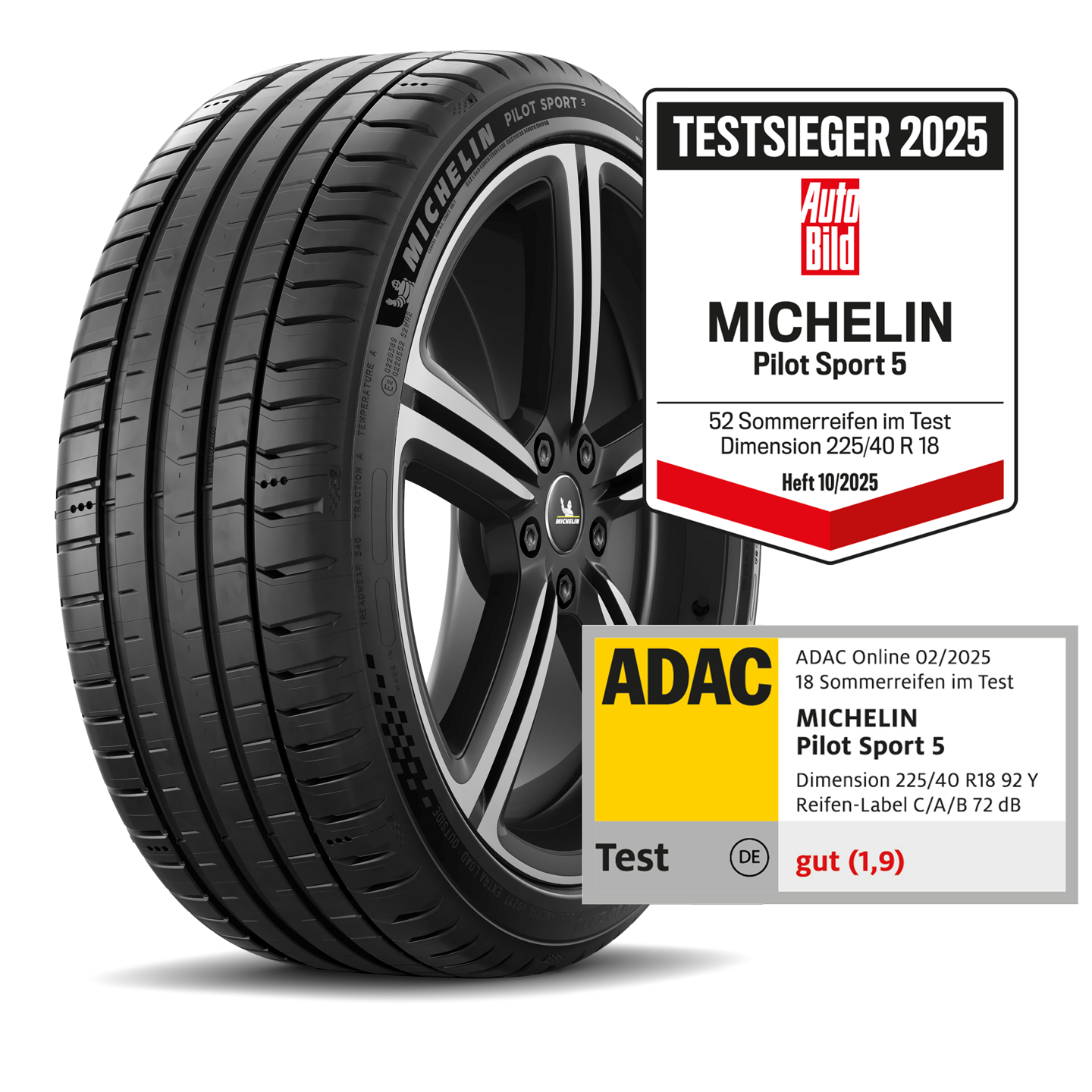 (1) Im Auftrag von Michelin durchgeführte Nass- und Trockenbremstests von TÜV SÜD in August und September 2018 in der Dimension 235/60 R18 auf einem AUDI Q5 2.0 TDI im Vergleich zu folgenden bei europäischen Händlern 2018 gekauften Reifen: BRIDGESTONE DUELER H/P SPORT, CONTINENTAL SPORTCONTACT 5 SUV, GOODYEAR EFFICIENT GRIP SUV, DUNLOP SPORTMAXX RT2 SUV, HANKOOK VENTUS PRIME 2 und PIRELLI SCORPION VERDE. Die beworbenen Tests sind abrufbar unter www.michelin.de/testberichte_michelin_ps4suv